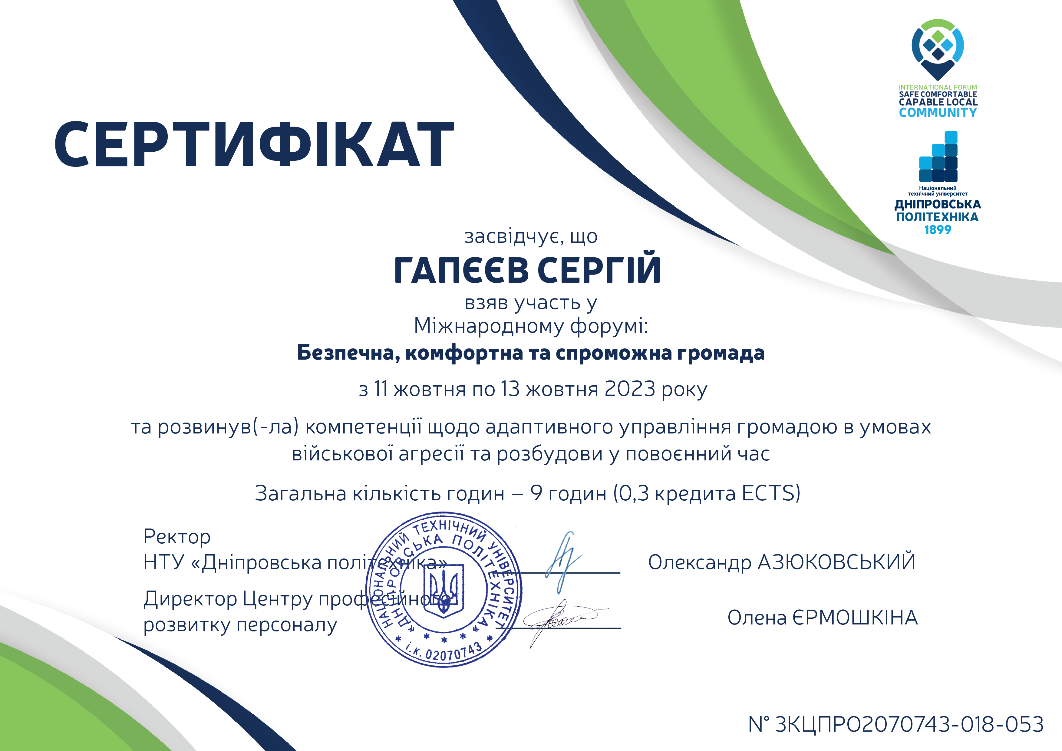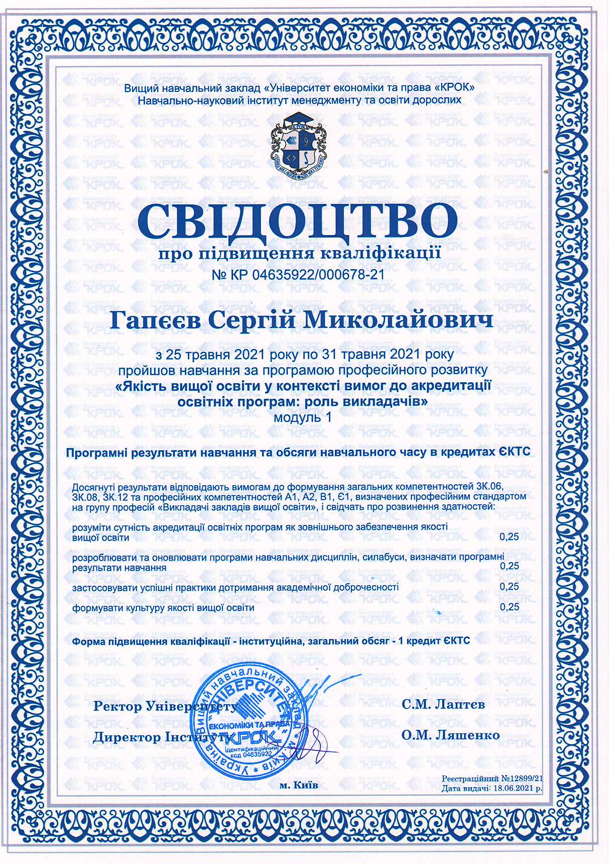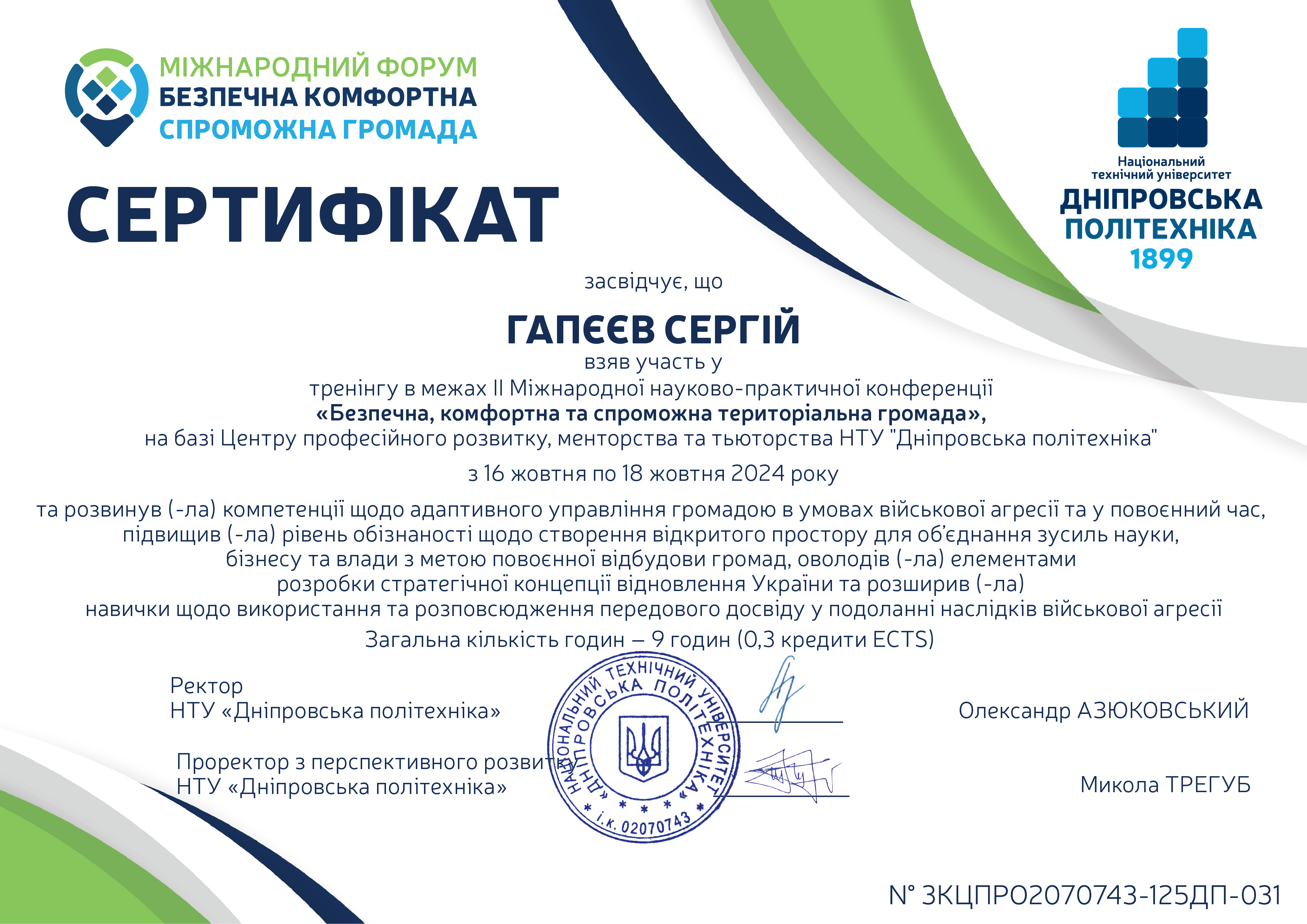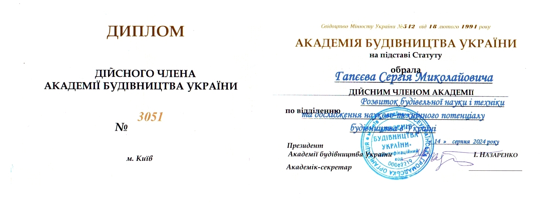 Є дійсним членом Академії будівництва України.