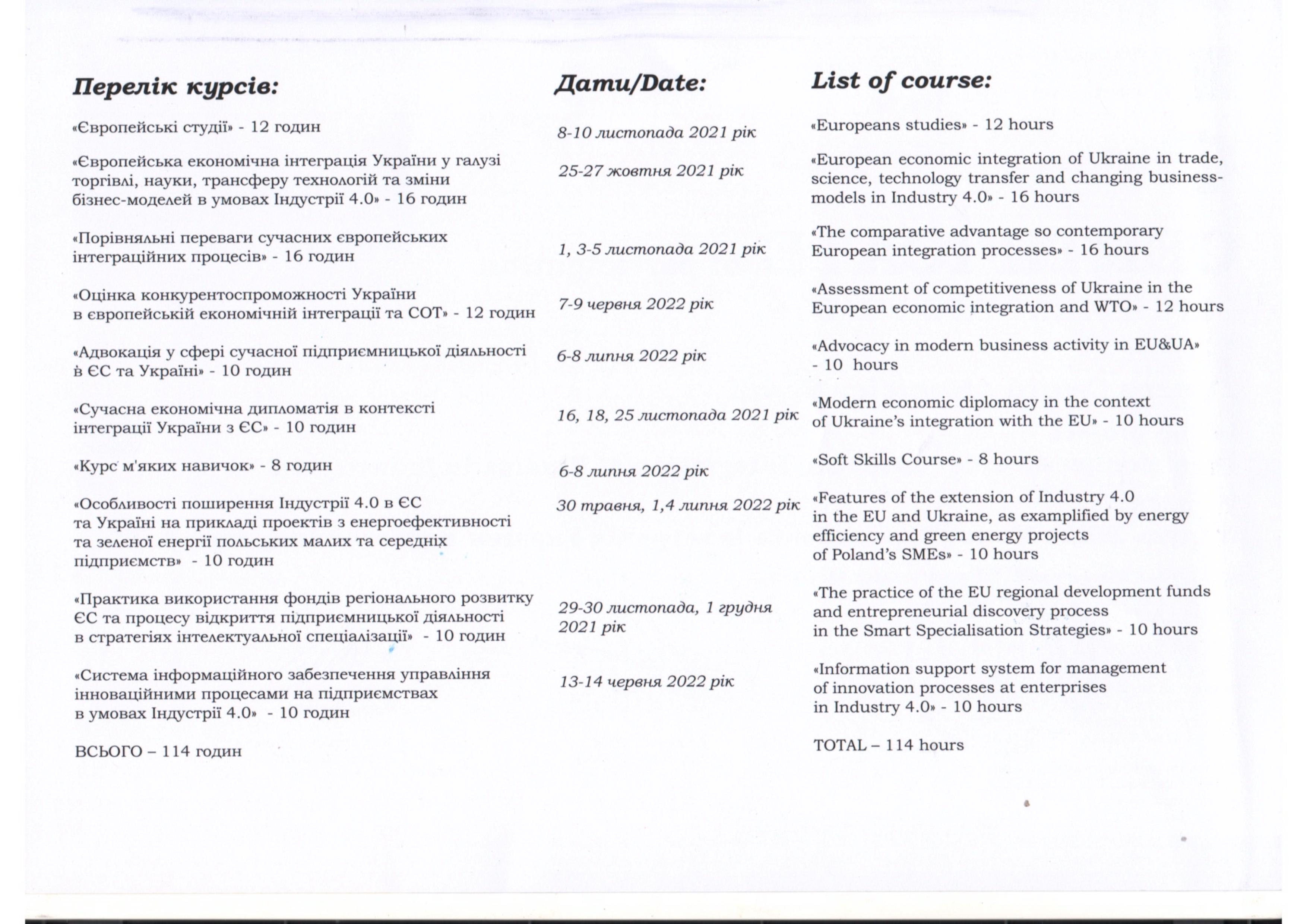 ПЕРЕЛІК ДИСЦИПЛІН, ЩО ВИКЛАДАЮТЬСЯ: