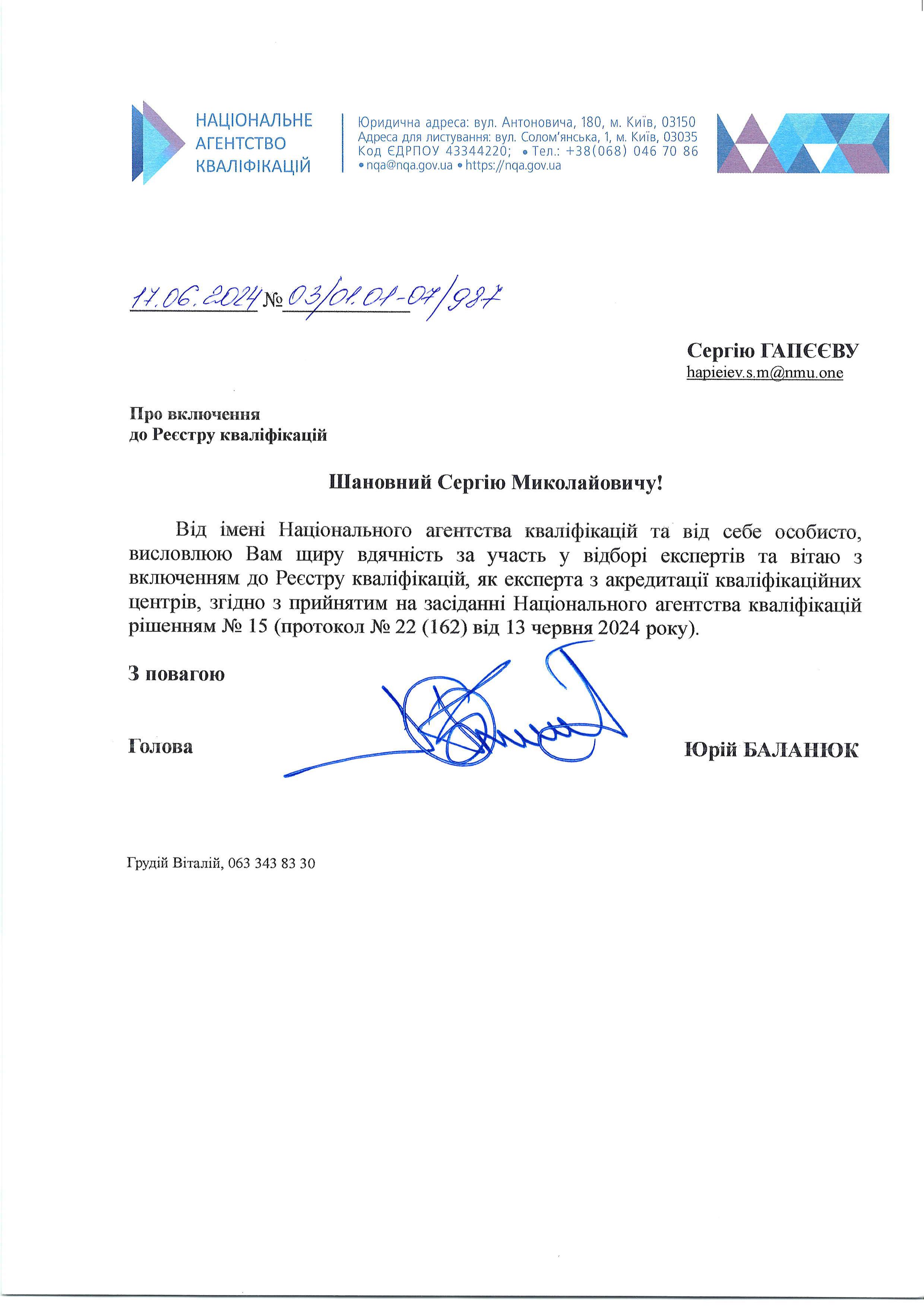 Є експертом Науково-технічної ради Міністерства освіти і науки України.