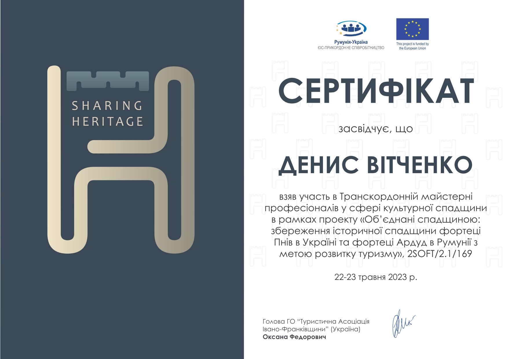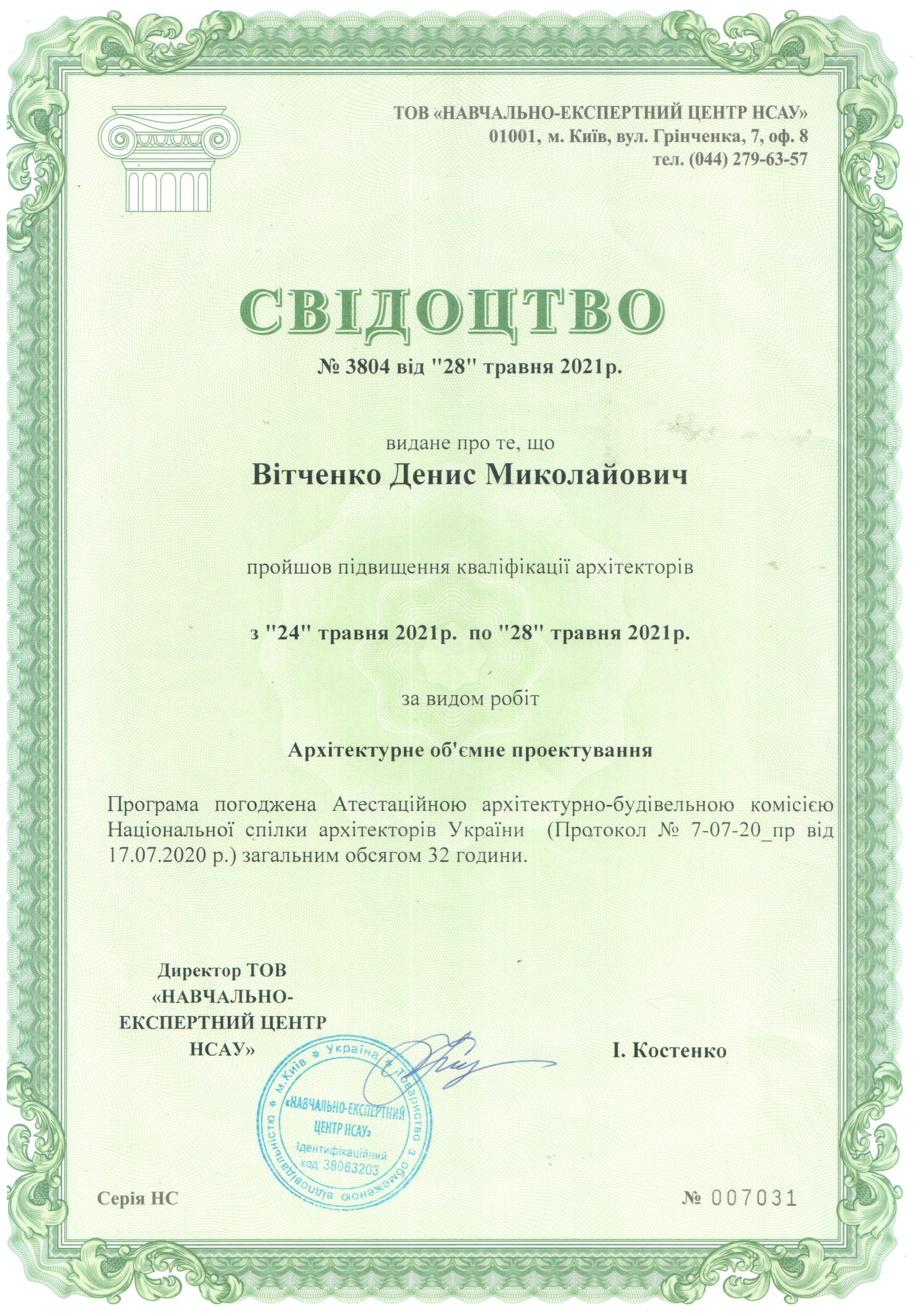 Як сертифікований архітектор Денис Вітченко бере участь в проєктах ремонтно-реставраційних робіт на пам’ятках архітектури, розробці облікової документації на об’єкти культурної спадщини.
