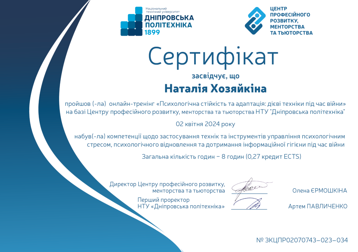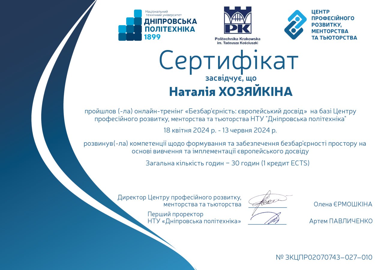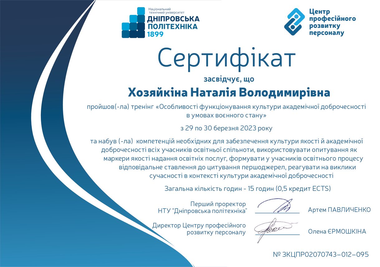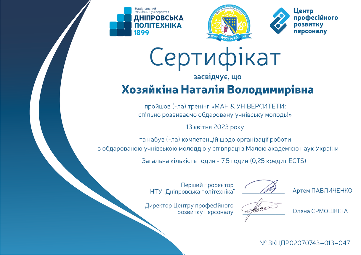 ХОЗЯЙКІНА Наталія Володимирівна
