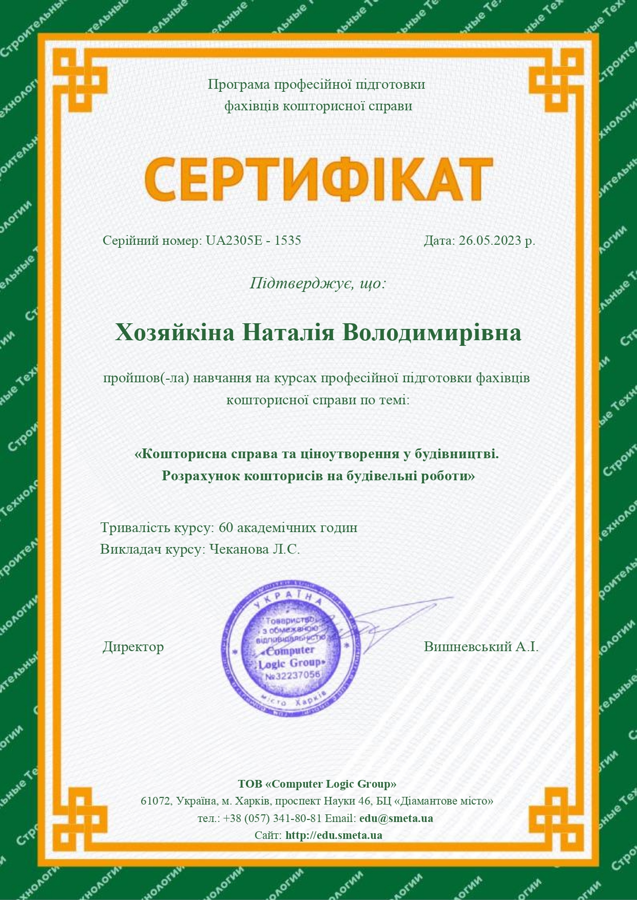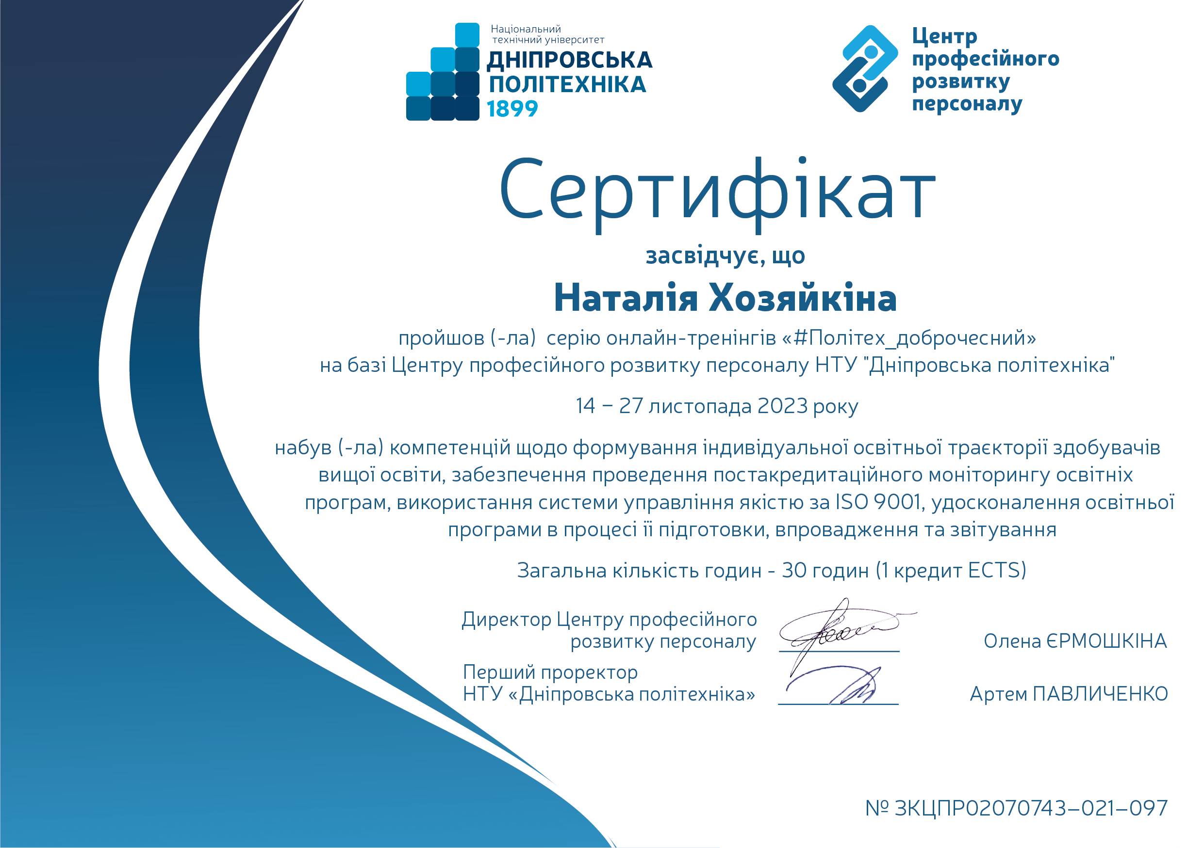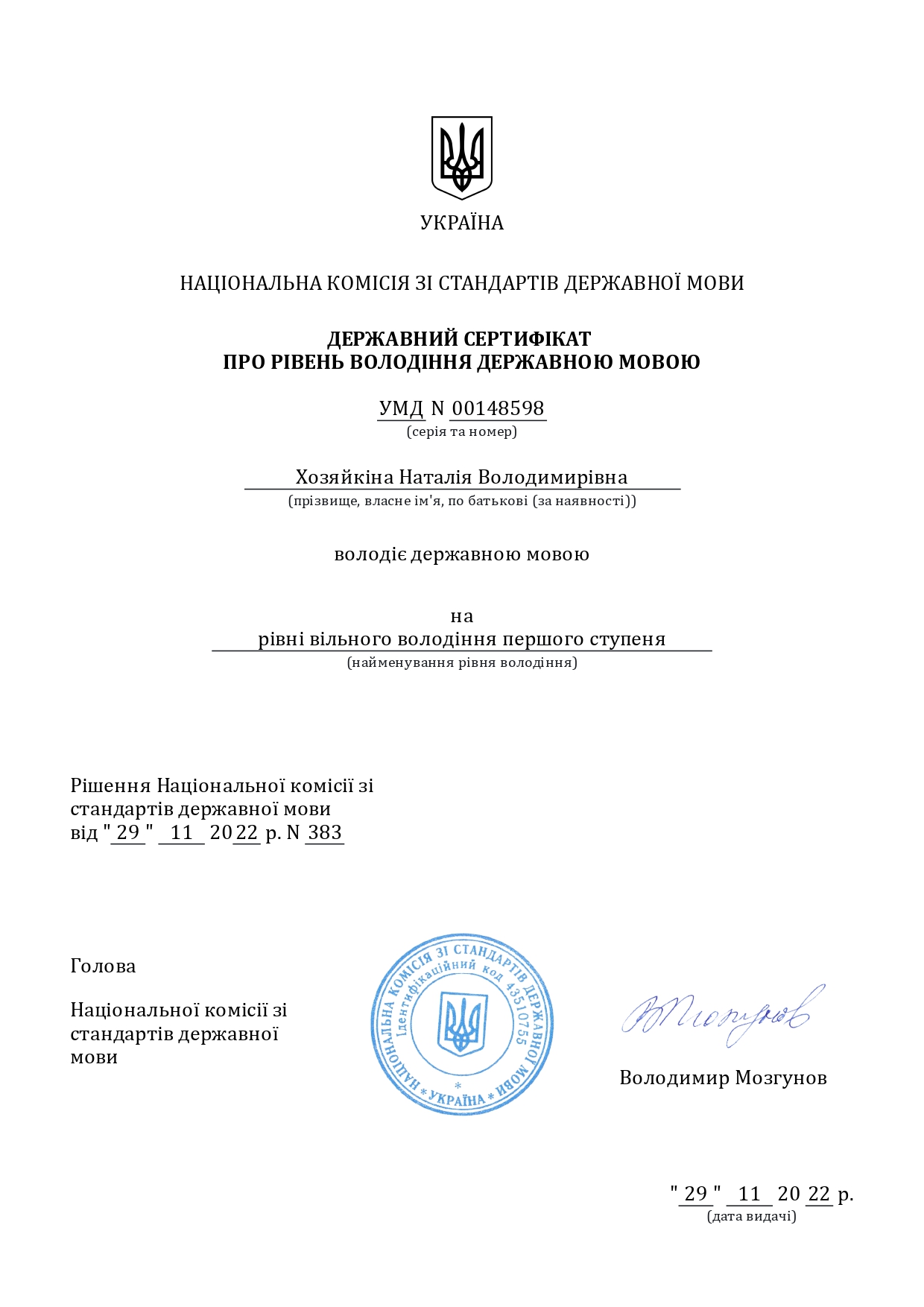 ХОЗЯЙКІНА Наталія Володимирівна