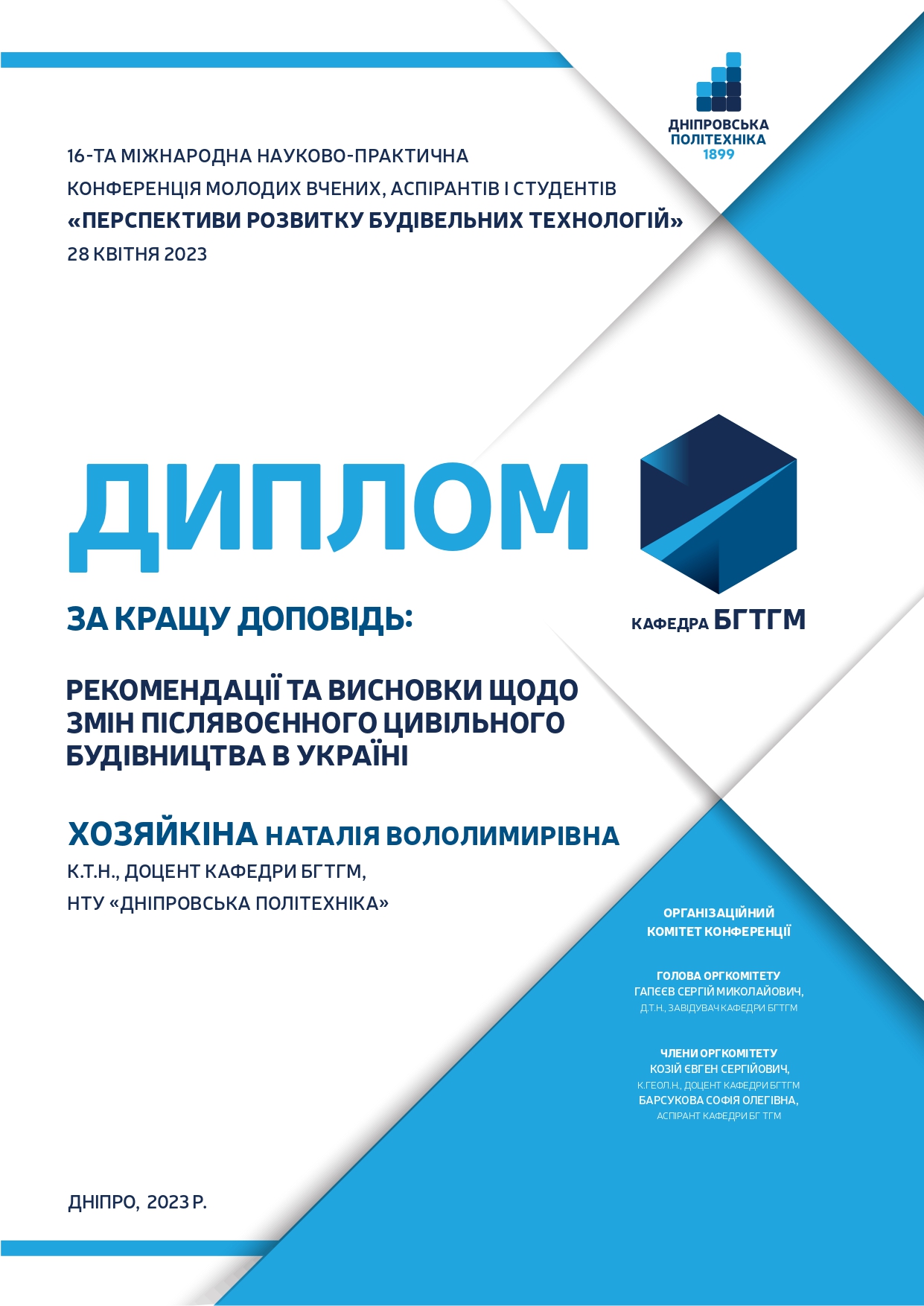 КАФЕДРА БУДІВНИЦТВА, ГЕОТЕХНІКИ І ГЕОМЕХАНІКИ
